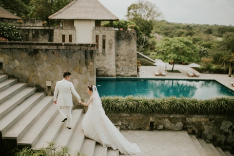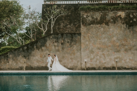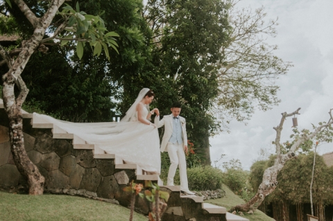 Continue their quite moment for some natural portraits at the enchanting garden-castle like of Amanusa Resort it self. Wonderful couple and breathtaking backdrop… Love!